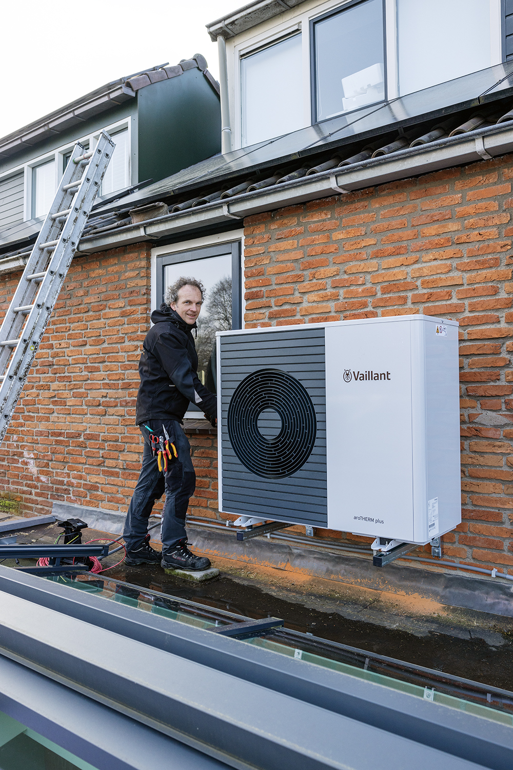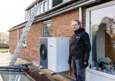 Deze mooie jongen is een All-Electric ready warmtepomp van Vaillant – een hybride warmtepomp die voorbereid is om ook All-Electric (zonder gas) te worden aangesloten. Deze warmtepomp van Vaillant is een type dat met het natuurlijke koudemiddel R290 werkt, en daarmee een superschoon alternatief is voor synthetische koudemiddelen.